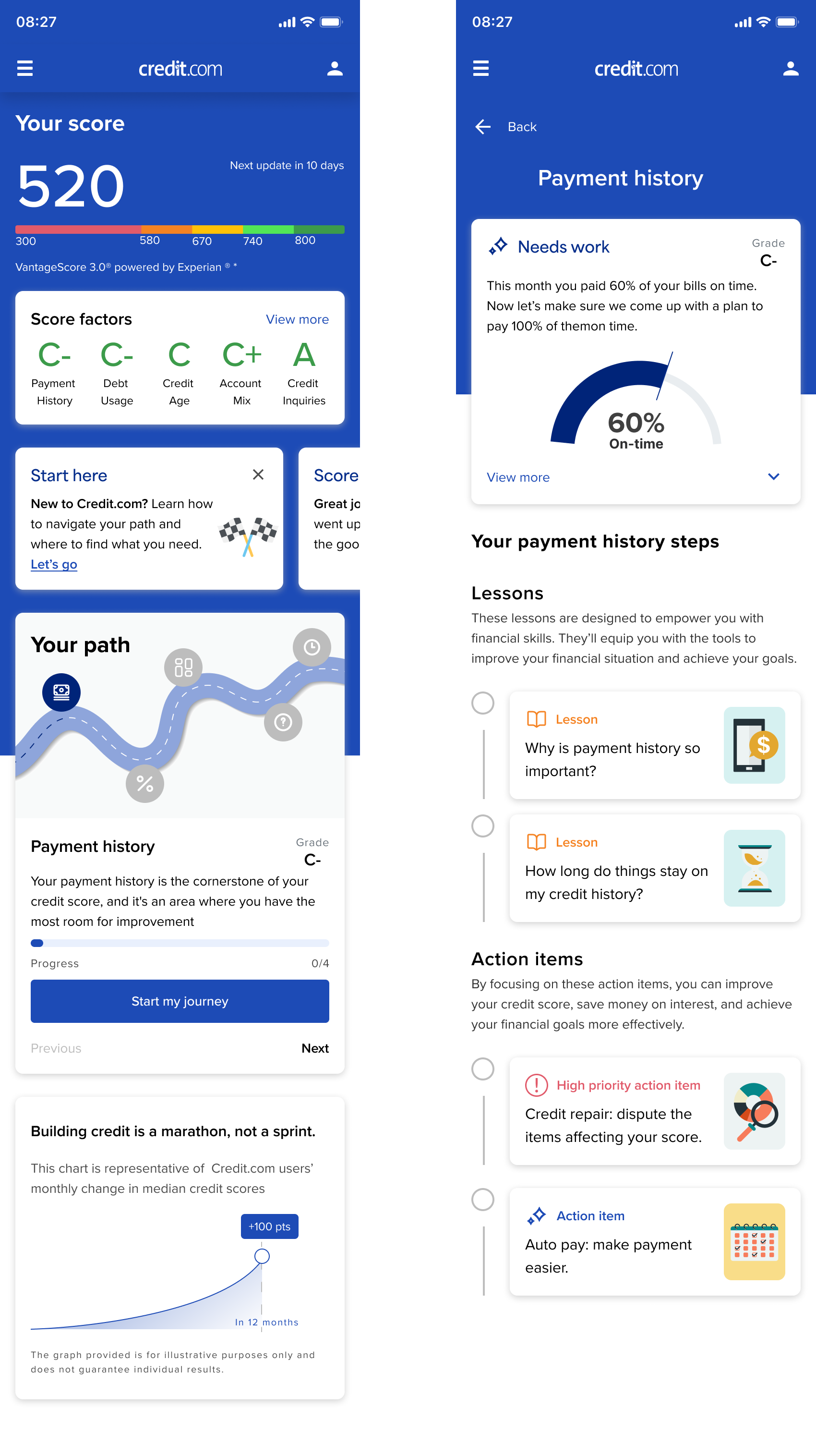 Users could now absorb key financial concepts faster and with less effort, increasing both engagement and retention while positioning Credit.com as a trusted financial guide.
